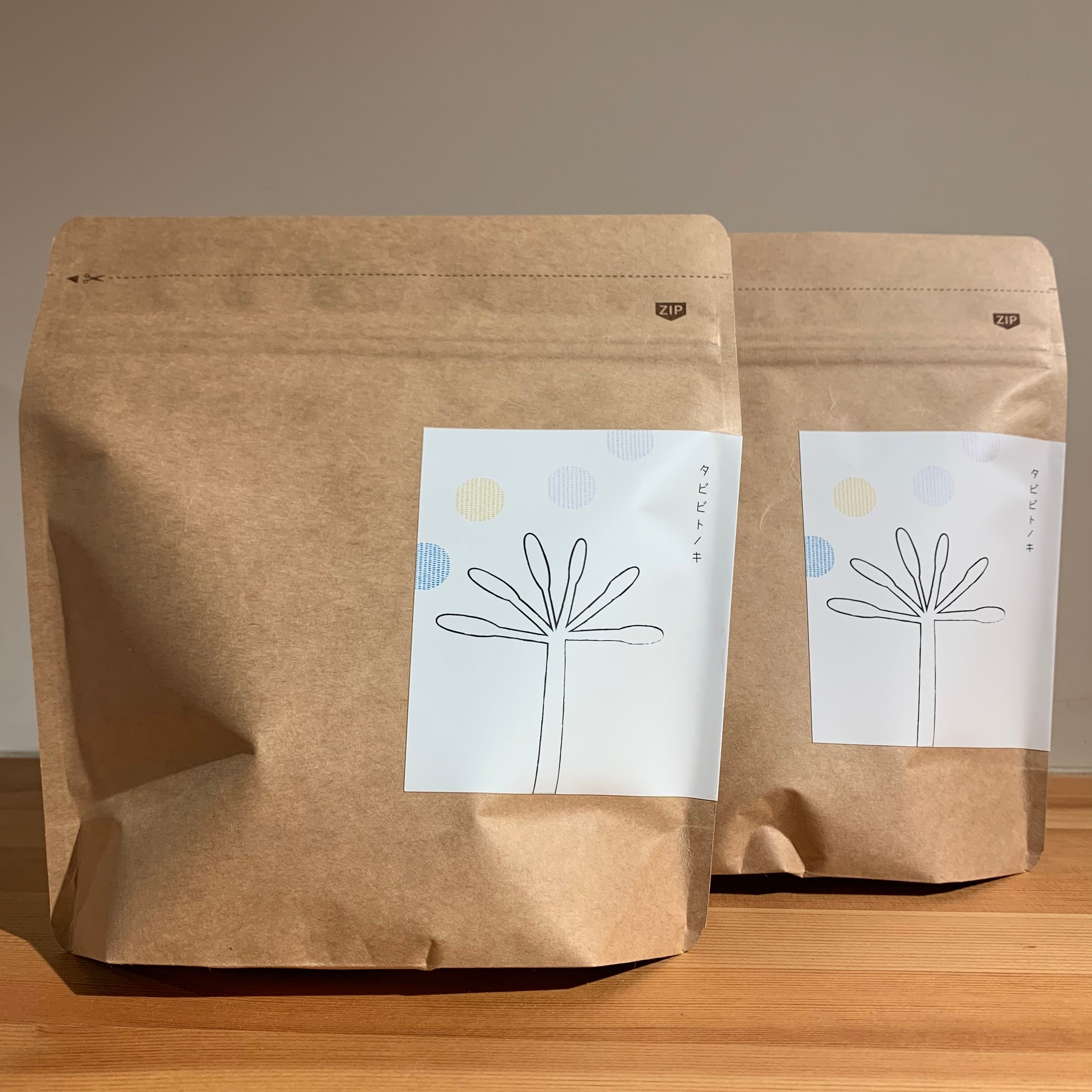 ジップ付きのコーヒー専用袋に250gずつ2袋分、豆(または粉)を詰めてヤマト宅急便にて発送させて頂きます。
